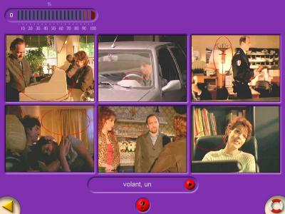 The learner takes part in a TV-style quiz on the movie, pitting his/her wits